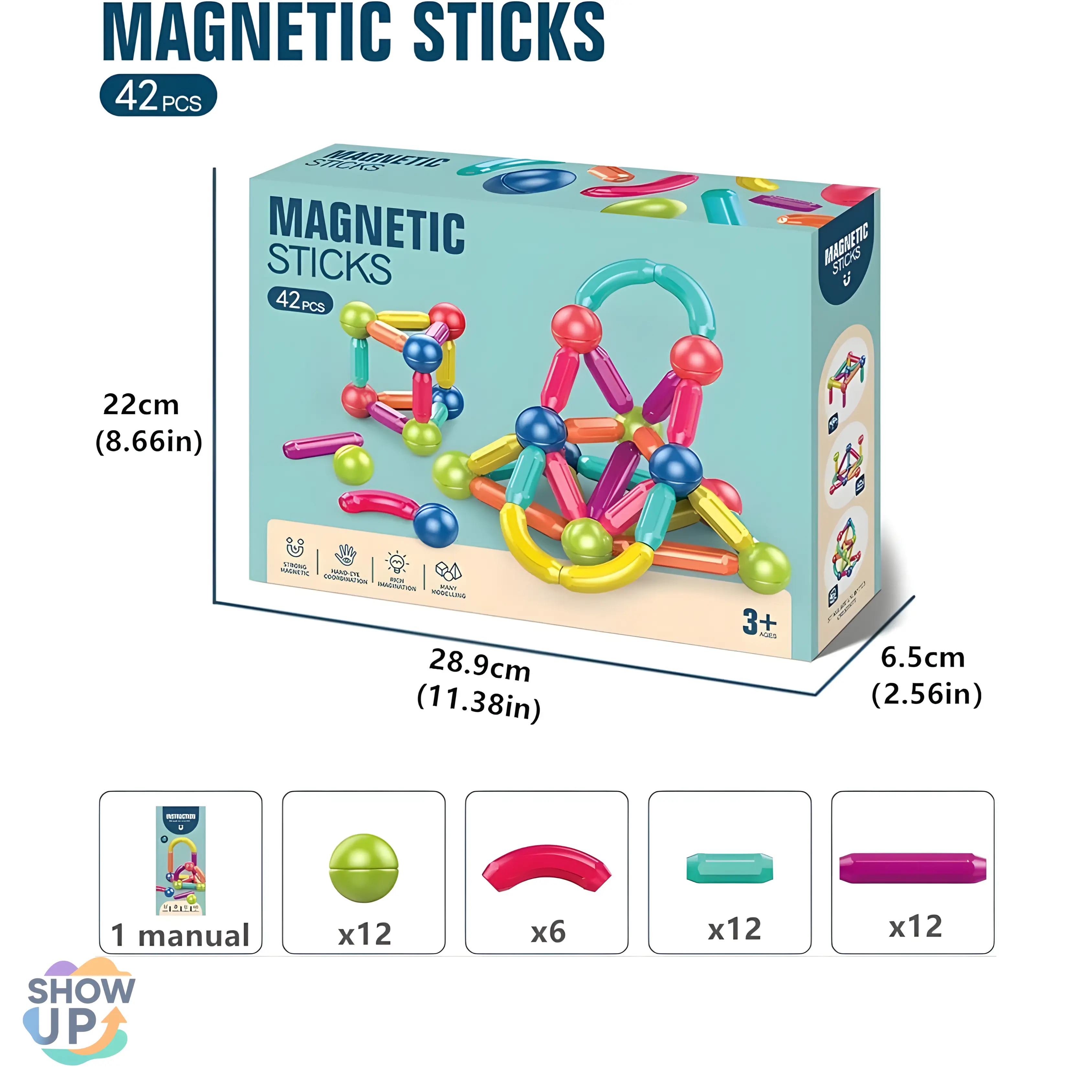 عصا مغناطيسية 25 قطعة للأطفال لتطوير المهارات العقلية والحركية، تعزيز الإبداع والتعلم بطريقة ممتعة وآمنة. مناسبة من 3 سنوات فما فوق.
