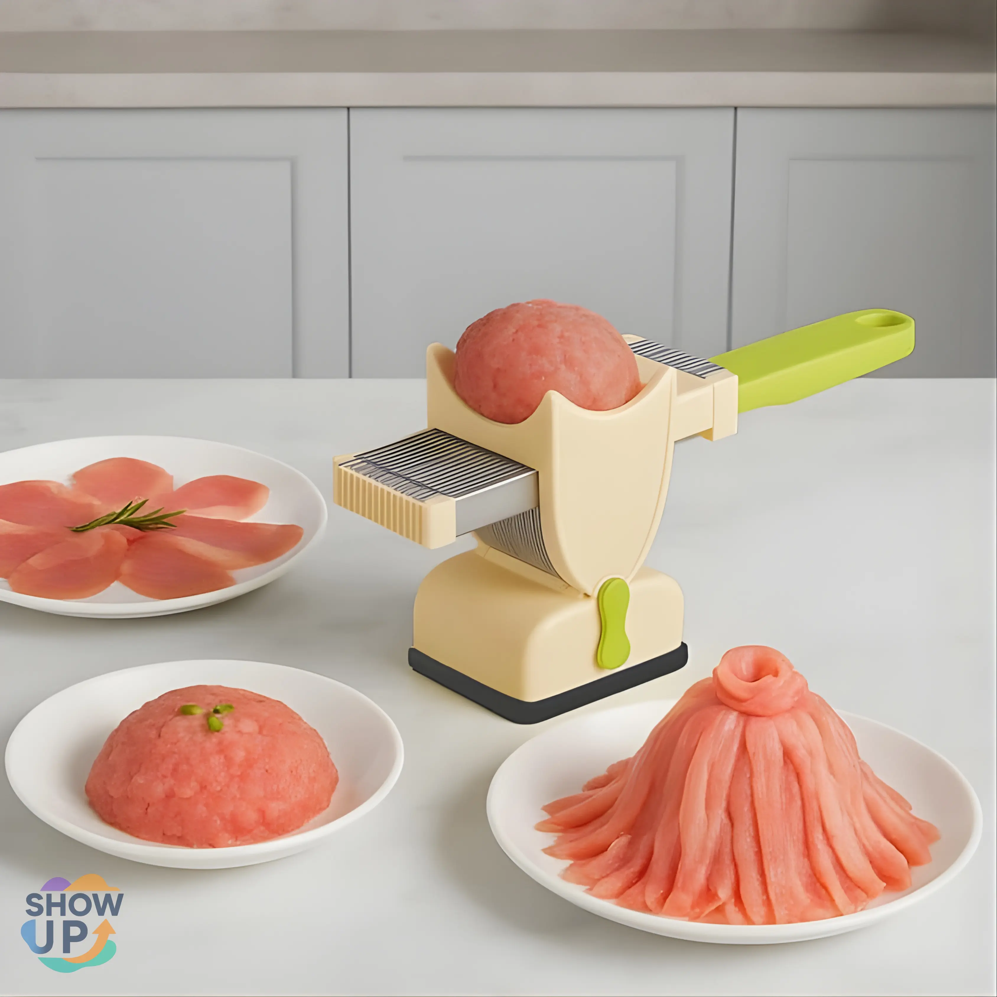 قطّاعة لحوم يدوية احترافية بشفرة حادة لشرائح ناعمة ومتساوية. مثالية للبيت أو المطاعم، سهلة الاستخدام والتنظيف وتقطع حتى 18 قطعة في المرة الواحدة.