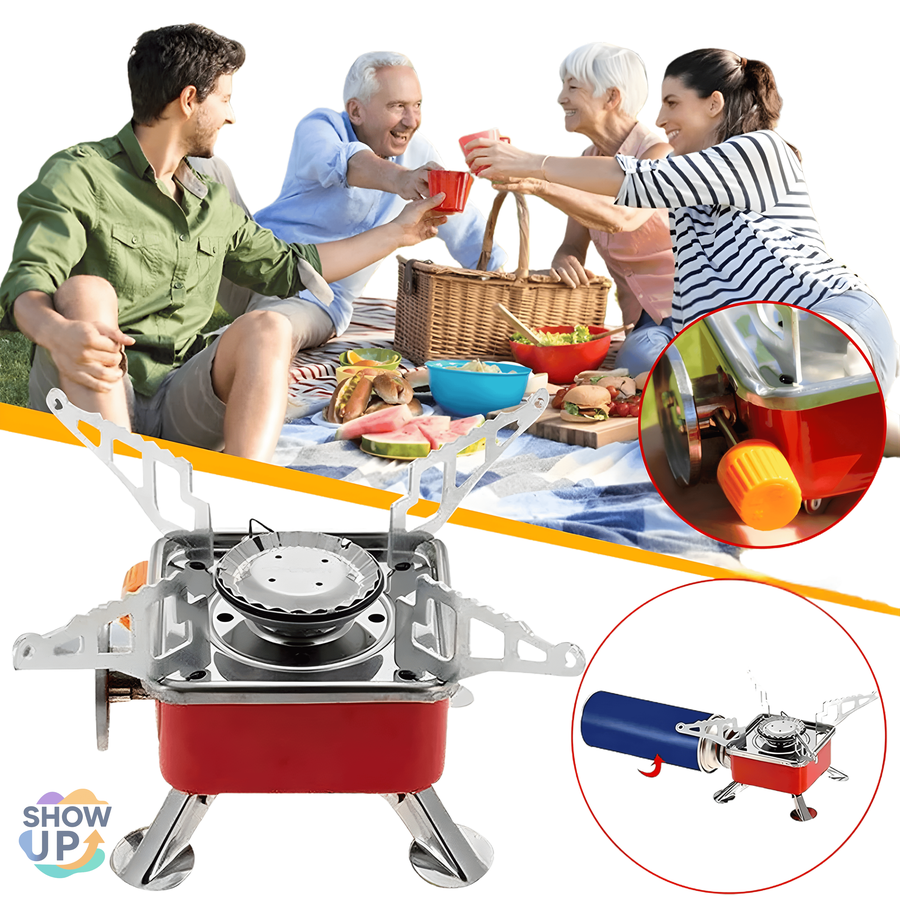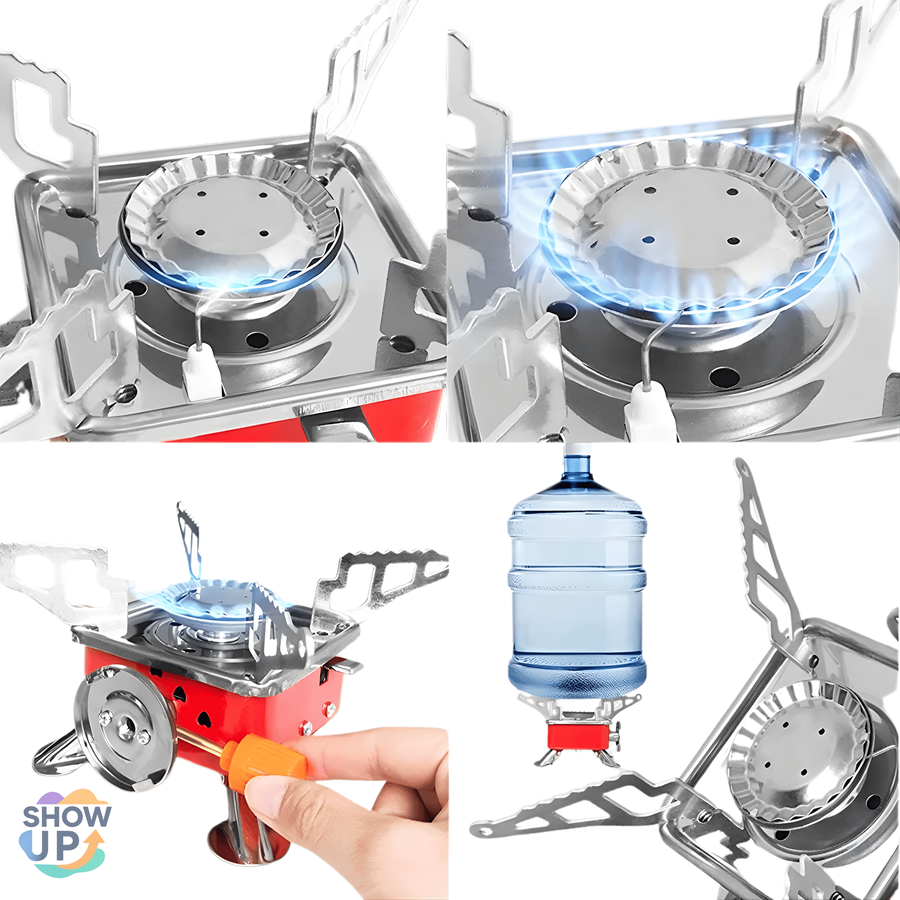 بوتاجاز رحلات متنقل خفيف وسهل الحمل، مصنوع من ستانلس ستيل مقاوم للصدأ، يعمل على غاز البيوتان والبروبان، يوفر تسخين سريع وأمان عالي أثناء الاستخدام في الرحلات.
