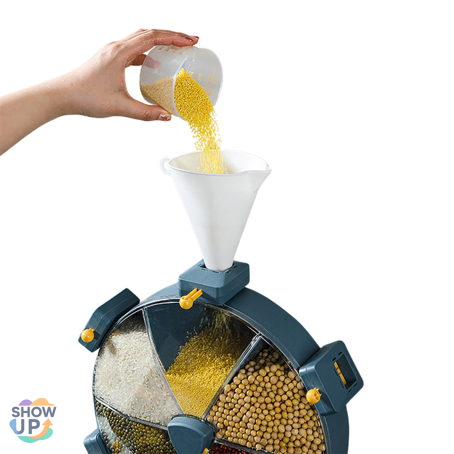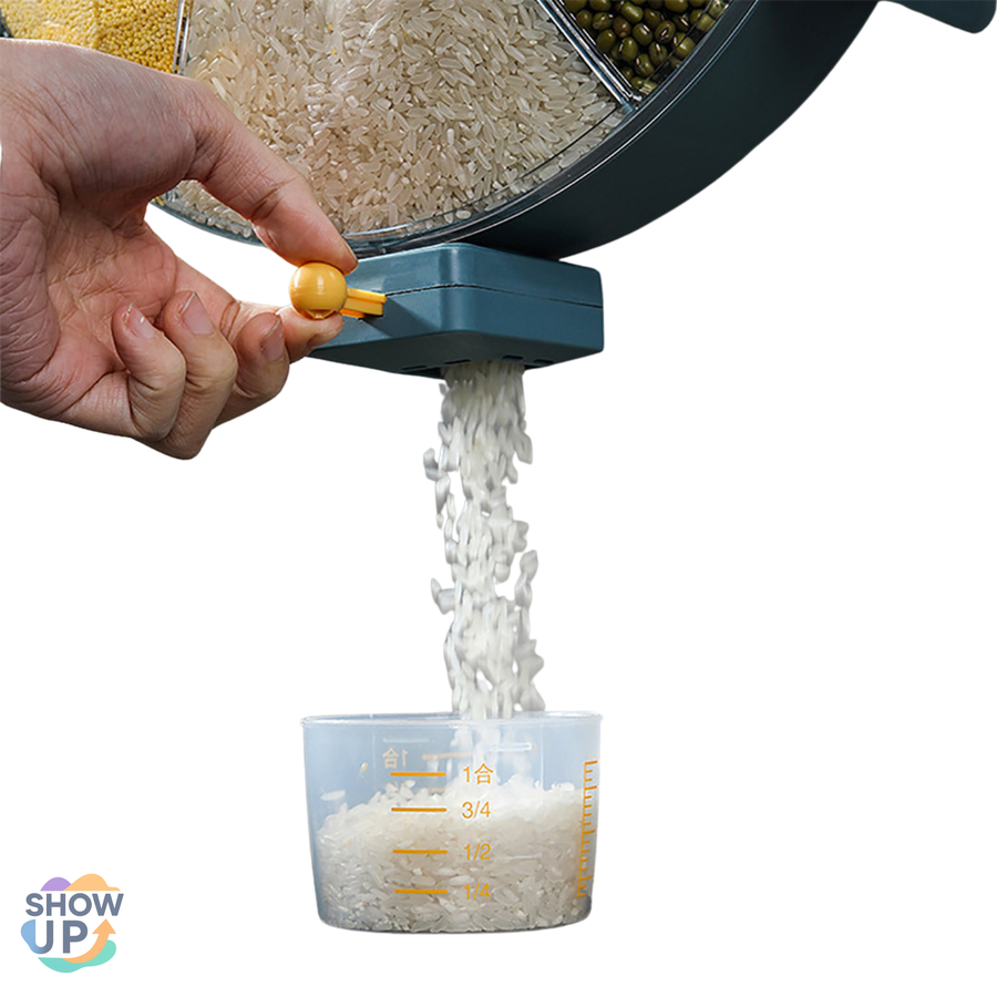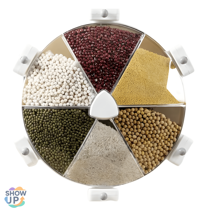 • 6 خانات واسعة بسعة 1.42 لتر تقريبًا لكل خانة لتخزين التوابل أو البقوليات أو الحبوب.