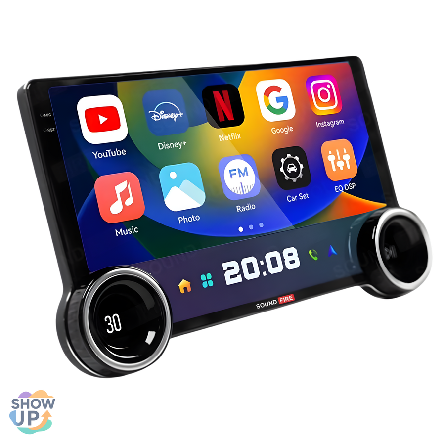 • مقابض تحكّم جانبية Dual Knobs: لضبط الصوت والتنقل بين القوائم بسهولة أثناء القيادة.