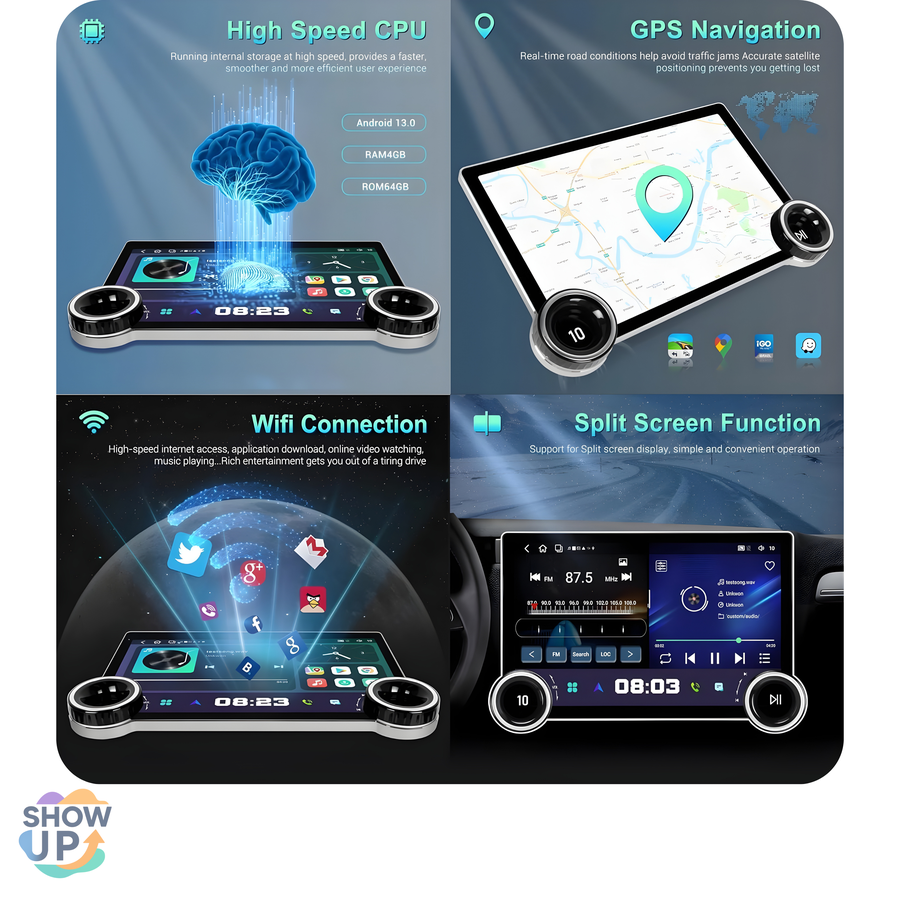 • نظام أندرويد مدمج: لتشغيل التطبيقات مثل الخرائط، اليوتيوب، والموسيقى بسهولة تامة.
