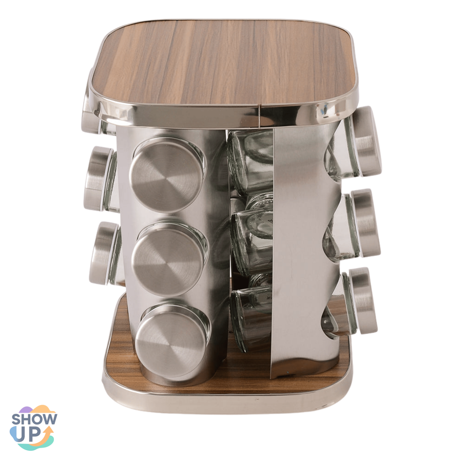 • سعة تخزين كبيرة: يحتوي على 12 زجاجة لحفظ أنواع التوابل المختلفة بشكل أنيق.